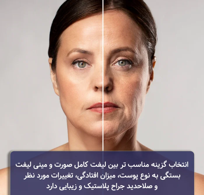 انتخاب بین لیفت کامل و مینی لیفت باید بر اساس سن، میزان افتادگی پوست، شرایط سلامتی و انتظارات بیمار انجام شود. هیچ پاسخ واحدی برای همه وجود ندارد و مشاوره با بهترین جراح لیفت صورت در تهران، تنها راه مطمئن برای تعیین روش مناسب است.